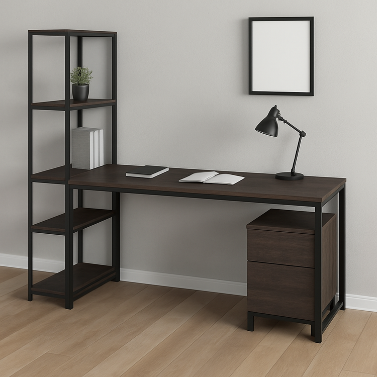 میز مطالعه، میزکامپیوتر قفسه دار وکشو دار مدل honarmand کد ۱۰۹۸ رنگ قهوه ای /سفید