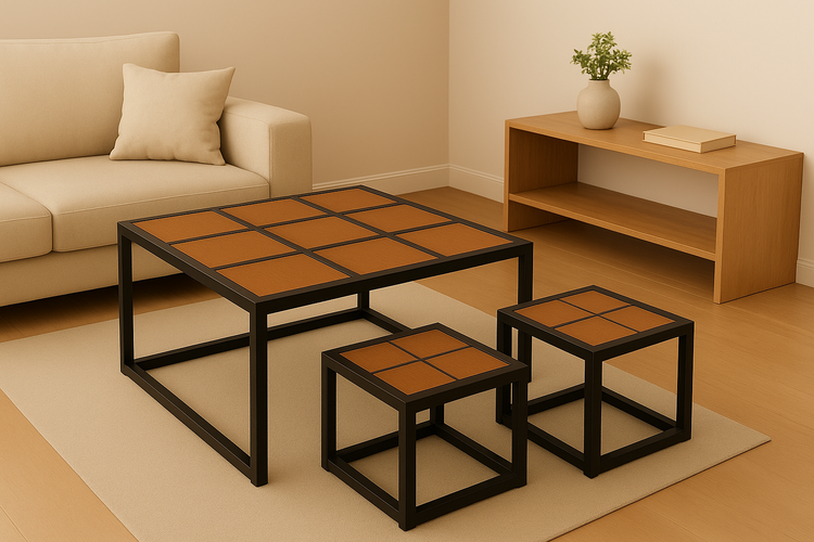 ست میز جلو مبلی و عسلی ترکیب چوب و فلز