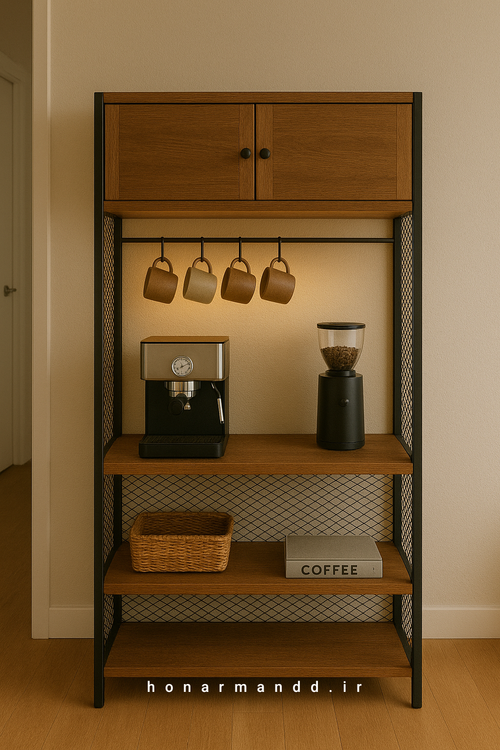 کافی بار و استند دکوراتیو ترکیب چوب وفلز مدل honarmand