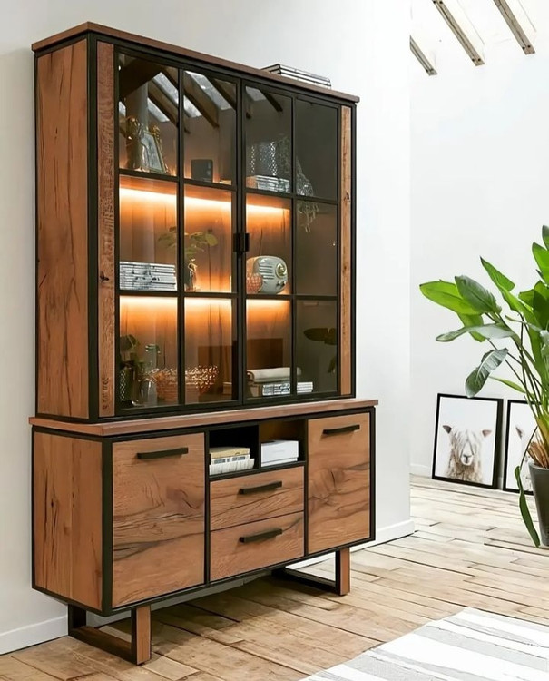 ویترین ،بوفه،کتابخانه ترکیب چوب وفلز کد۹۵۲۳ رنگ قهوه ای/سفید